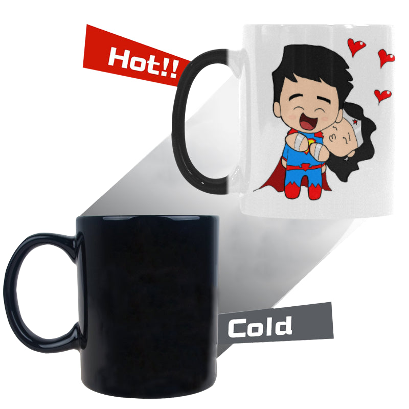 • Color changing ceramic mug (from black to white), heat-activation reveals hidden image.